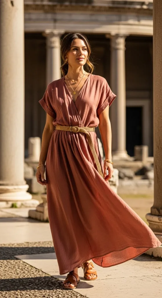 A maxi dress eliminates waist pressure and improves overall comfort. It is a practical choice among versatile Airport Outfit Ideas.