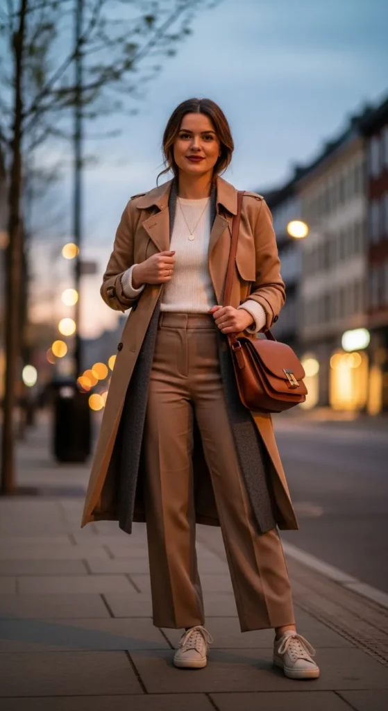 26. Layered Warmth and City-Ready Neutrals at Dusk