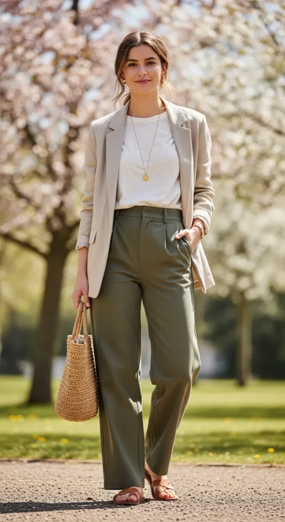 Tailored elements add structure and shape to casual spring outfits. They help create a neat and balanced appearance while traveling.