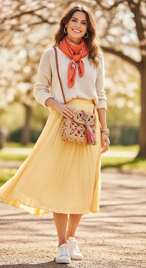 Scarves, sunglasses, and minimal jewelry add style without weighing you down. A light hat can also protect against spring sun and enhance your outfit.